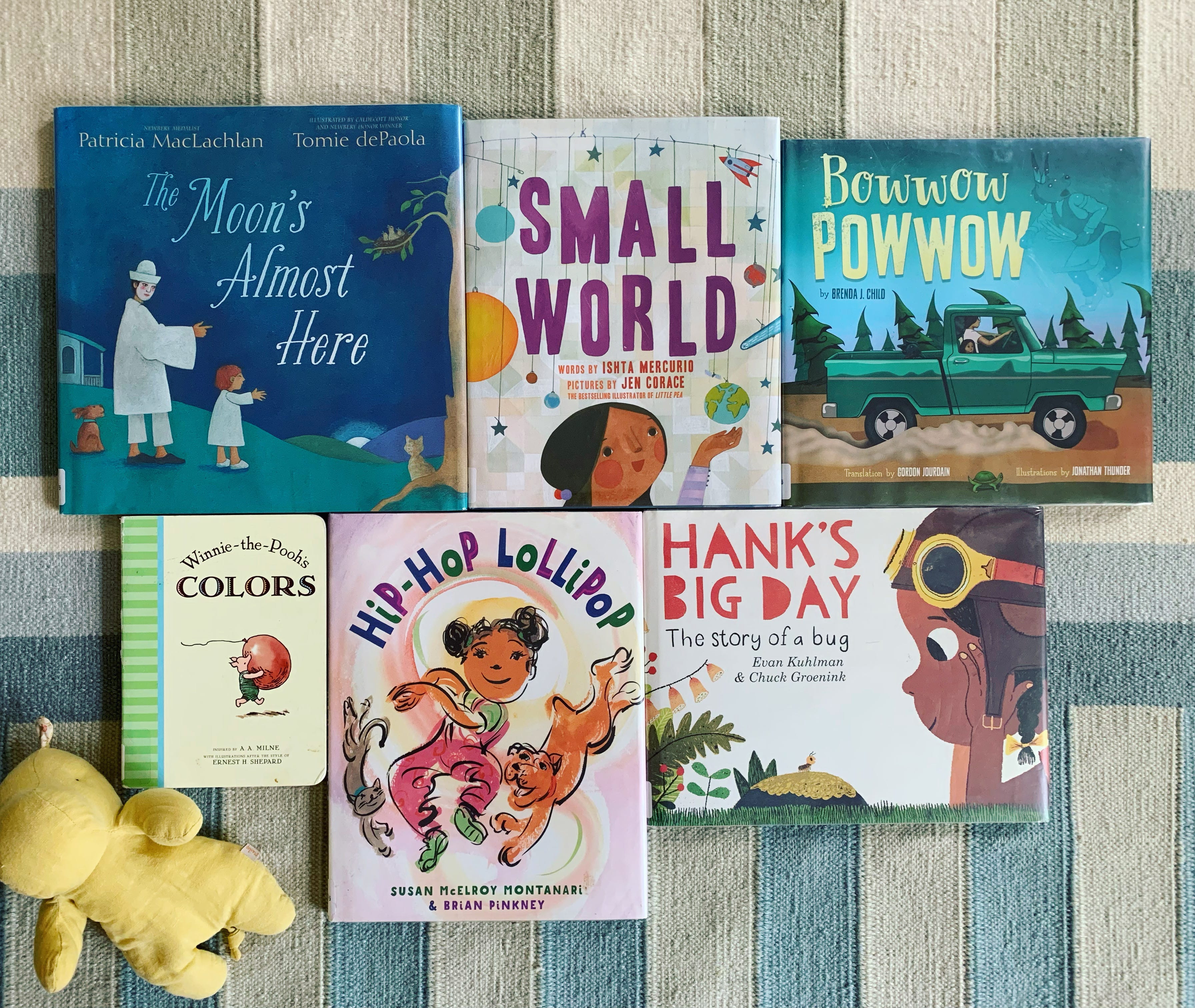 I have so many photos of our “library hauls” over the past 4+ years—children’s books we borrow and love from our local library. Our current assortment: